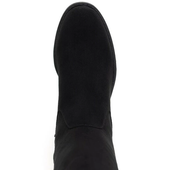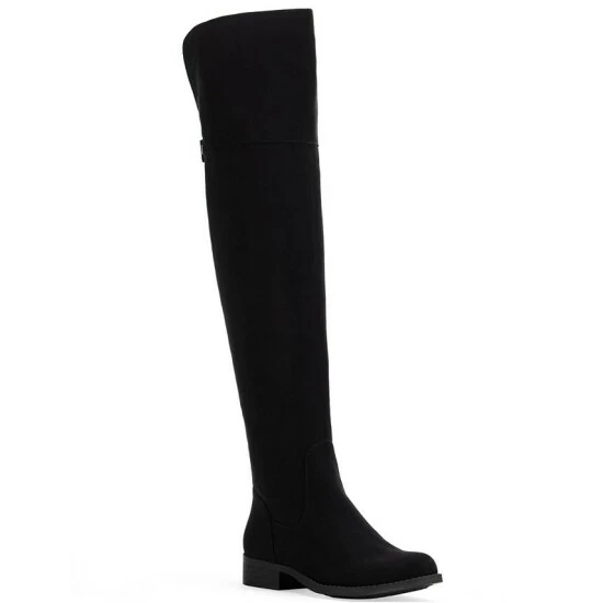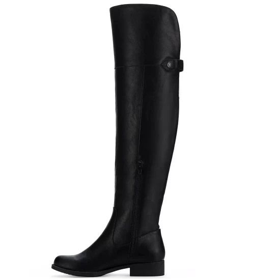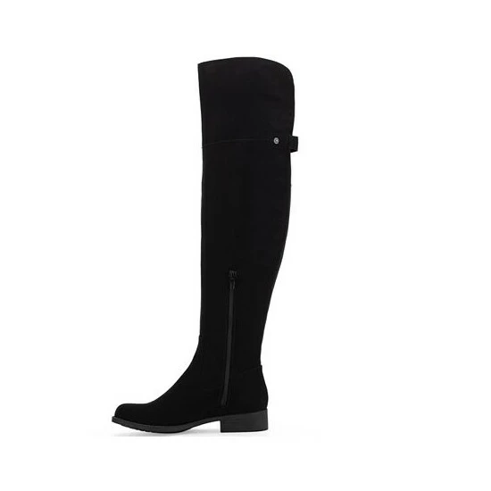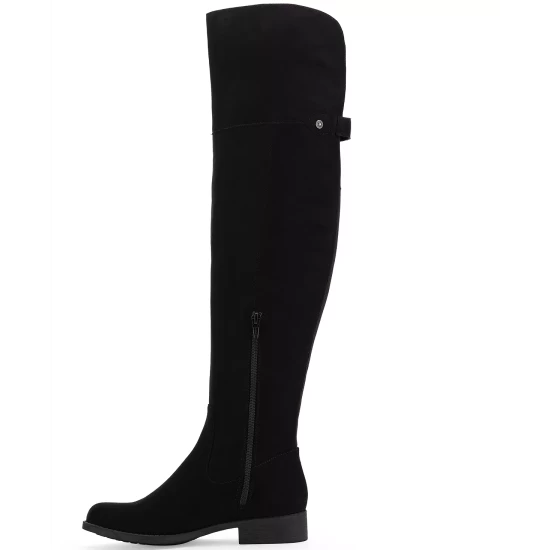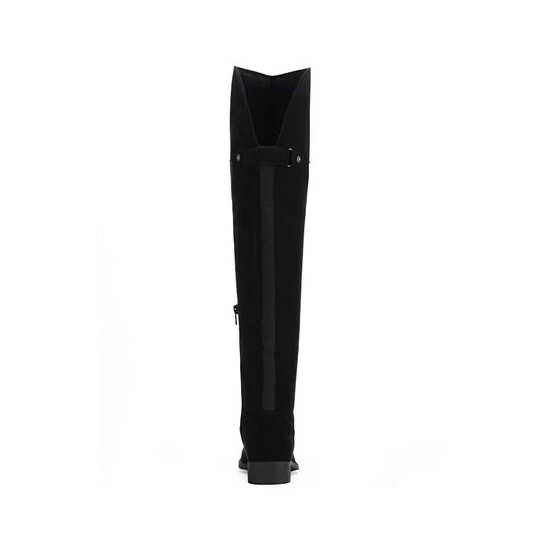 - Round-toe over-the-knee boots with inner ankle zipper closure