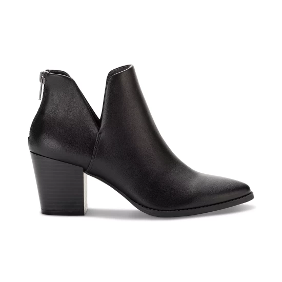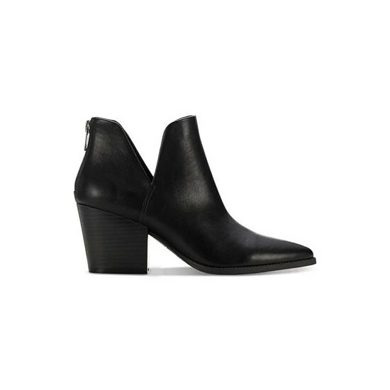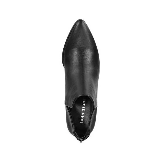 Plunging V-notch cutouts complete the boho-chic look of Sun + Stone’s Elizaa booties for a must-have addition to any wardrobe.