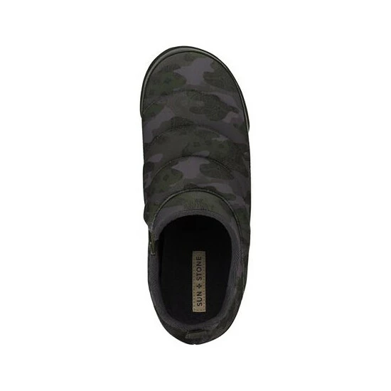 A quilted body lends the comfortable Derek slipper by Sun + Stone a more modern styling character.