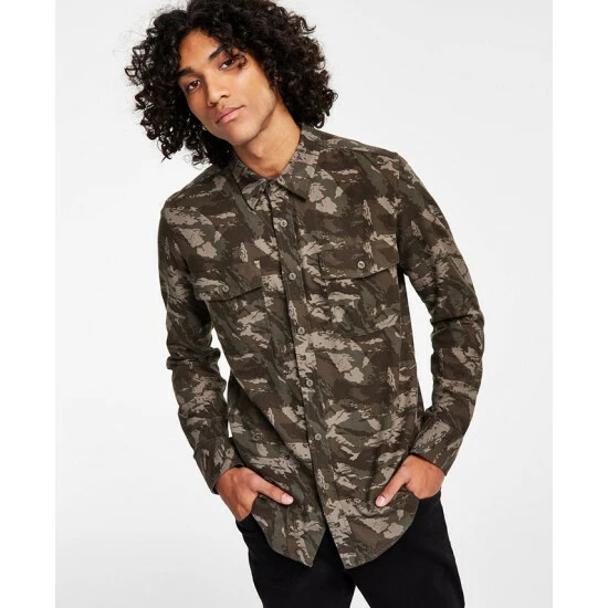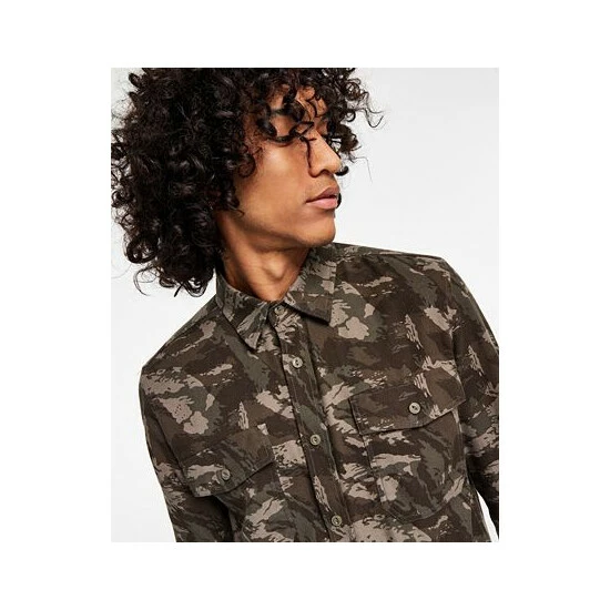 Cozy cotton flannel and a cool camouflage pattern make this Leo shirt from Sun + Stone the perfect choice for casual style and comfort.