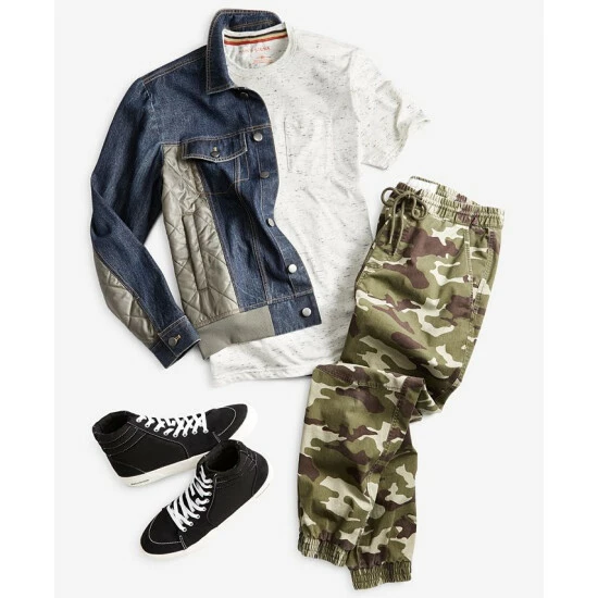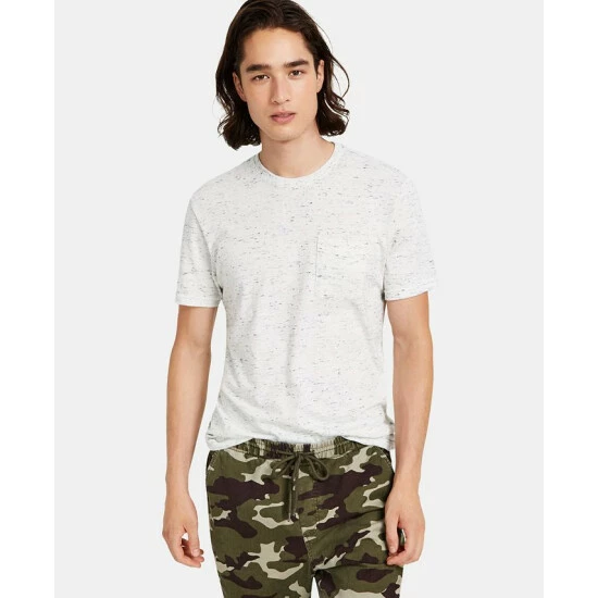 Sun + Stone’s modern crew neck t-shirt features contrast chain stitching and a chest pocket for a fresh look matched by timeless versatility.