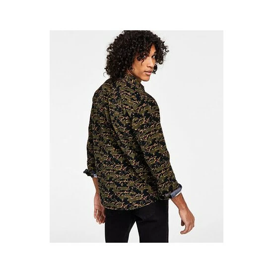 A handsome update on classic corduroy is presented by Sun + Stone with the slick camo print of this rich textured long-sleeve button-up shirt.