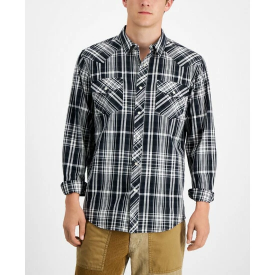 Wrangle up a fresh relaxed look with the refreshing plaid and Western-inspired styling of this Remington cotton shirt from Sun + Stone.
