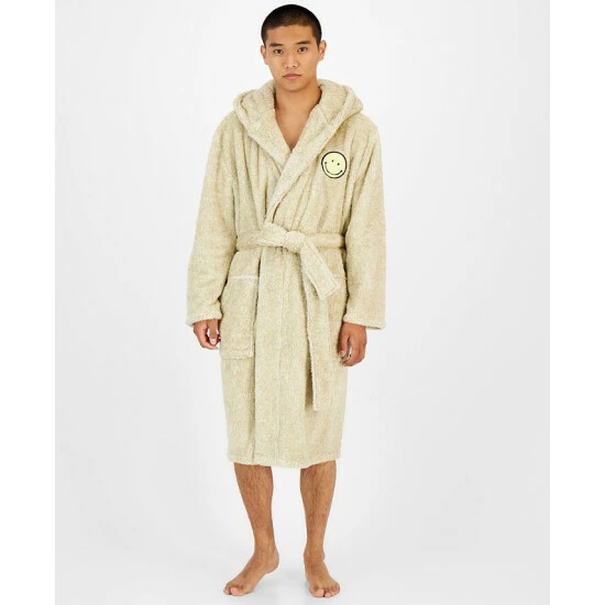 Bring a carefree feel to the bath, bedtime and beyond with the embroidered smiley face featured at the chest of this super-soft fleece robe from Sun + Stone.