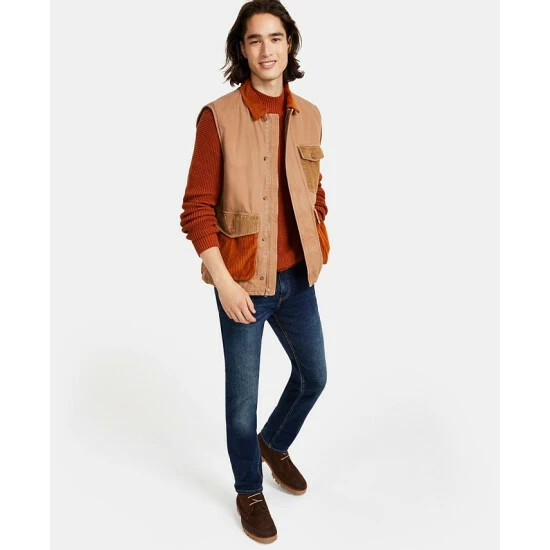 Cultivate a cool weather, seasonal look with the rust tones and layering-ready options offered by this sweater, vest and jeans ensemble by Sun + Stone.
