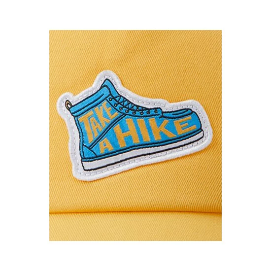 In breathable mesh, this graphic hat from Sun + Stone features a shoe patch at the front and an adjustable back.