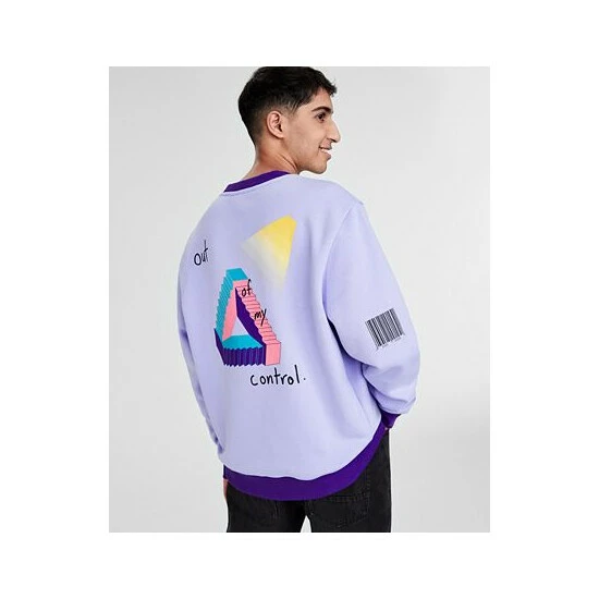 - Printed messages at chest, sleeves and back; barcode print at back right sleeve; graphic print at center back; contrast ribbed-knit cuffs and hem